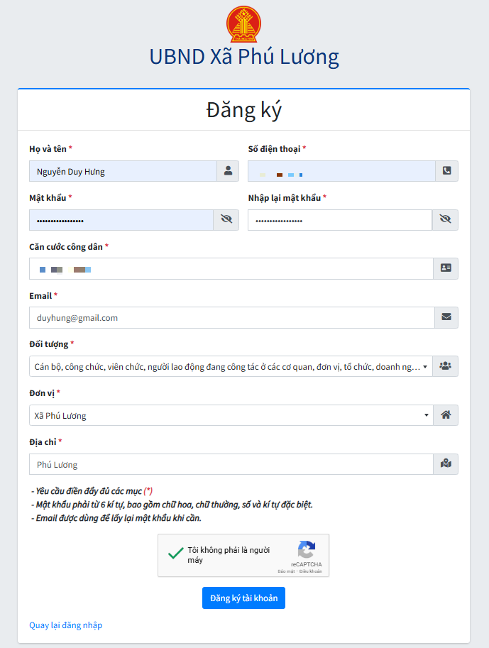 Sử dụng tài khoản và mật khẩu đăng ký tại bước 1 để đăng nhập vào hệ thống.