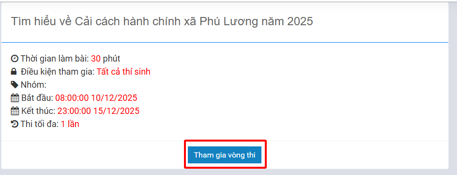 Truy cập trang chủ, lựa chọn cuộc thi để tham gia.